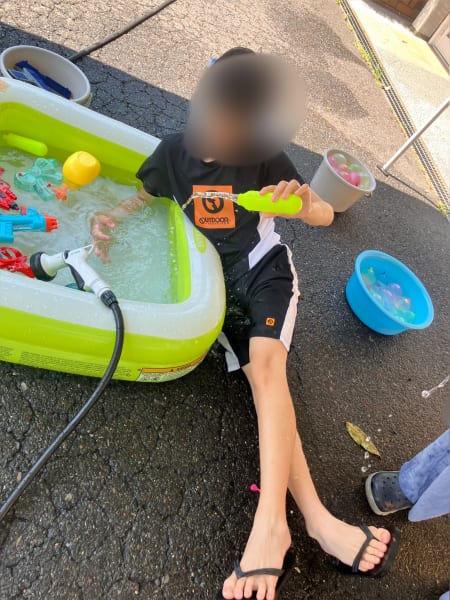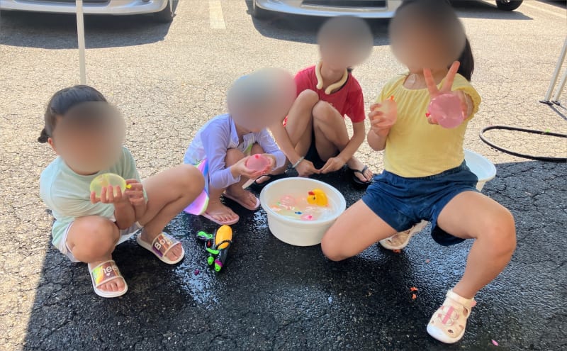 水遊びは今年も大盛り上がり、子どもたち
