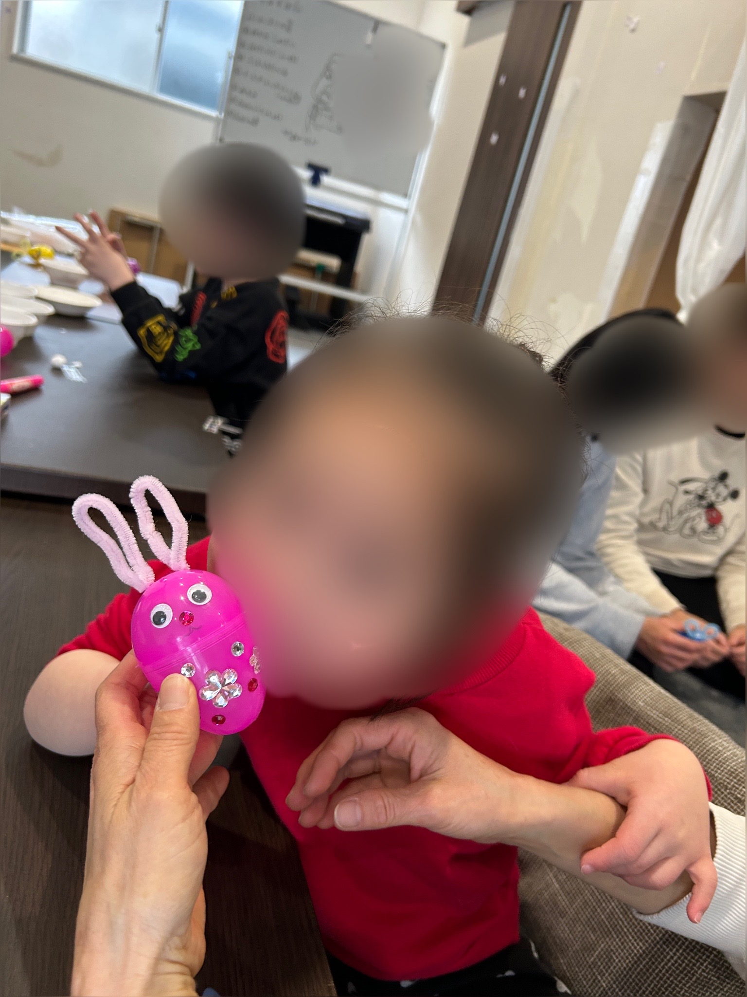 たまごのケースをかわいくデコレーションして、お菓子を詰めて楽しみました~🐰✨