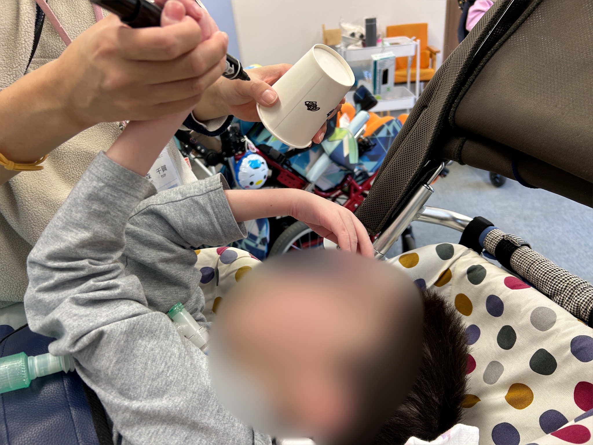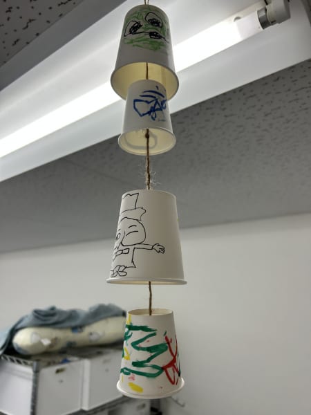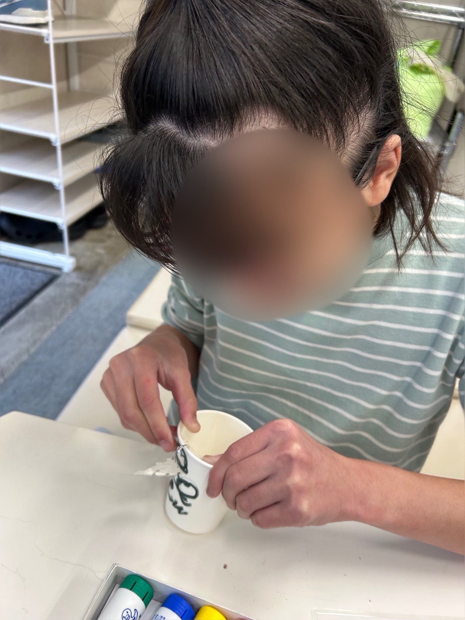 紙コップに顔や好きなキャラクターを描いたり、色を塗ったりしました😆