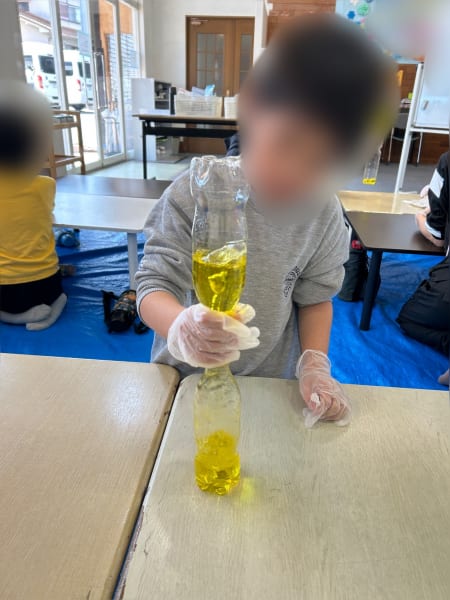上のペットボトルに上手にトルネードが出来ているのが分かりますか?!