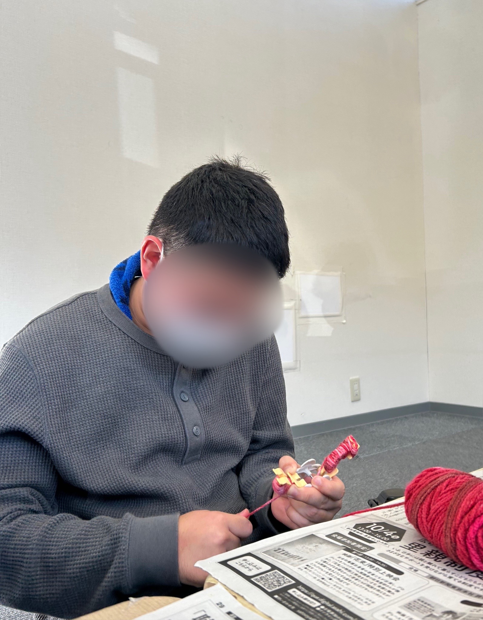 毛糸をグルグルと何重にも巻いて